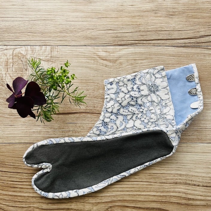 - 可憐なグレーのふちどりのお花柄足袋 サイズオーダー[AB05]