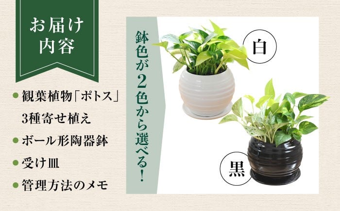 - 【選べるカラー】観葉植物 ポトス オウゴンカズラ 3種 寄せ植え ボール形 陶器 鉢植え / 観葉 植物 インテリア おしゃれ プレゼント / 大村市 /琴花園[ACYK007]