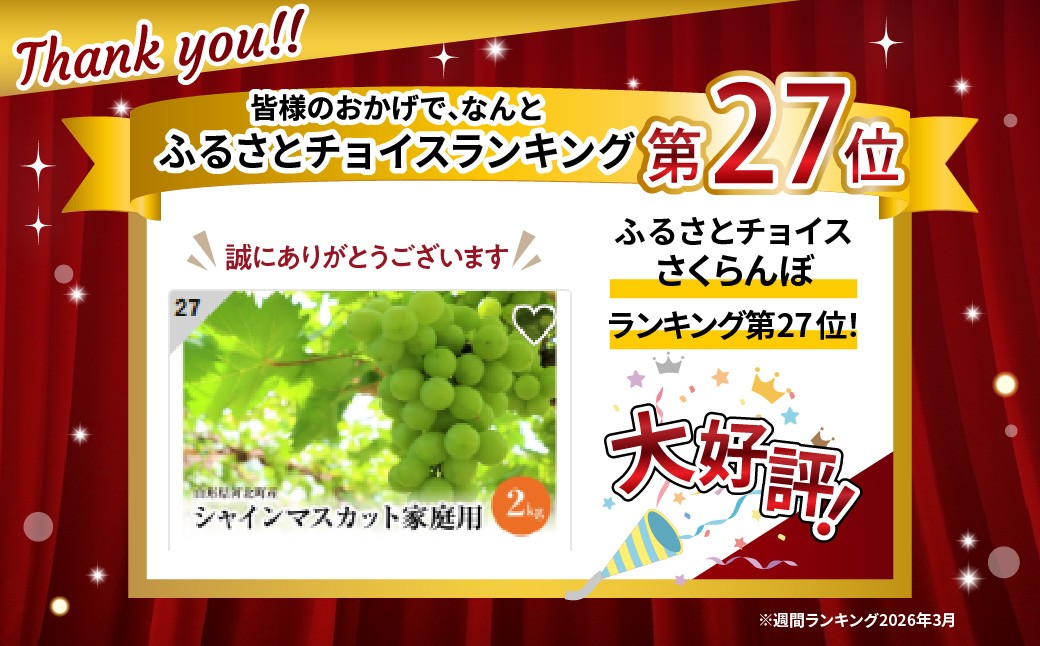 【令和8年産】ご家庭用シャインマスカット 2kg(2~4房) 山形県河北町産【JAさがえ西村山】 ka008-017e-r8