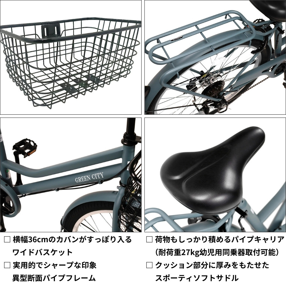 自転車 シティサイクル 27.5型 グリーンシティ ファミリーワイドタイヤ 外装6段変速 オートライト ローラーブレーキ[マットカーキ] 通学自転車 通勤自転車 27.5インチ 完成品納品 子ども乗せ自転車 配送エリア 関東限定 東京 埼玉 神奈川 千葉 群馬 栃木 茨城 完成品納品 一都六県限定配送