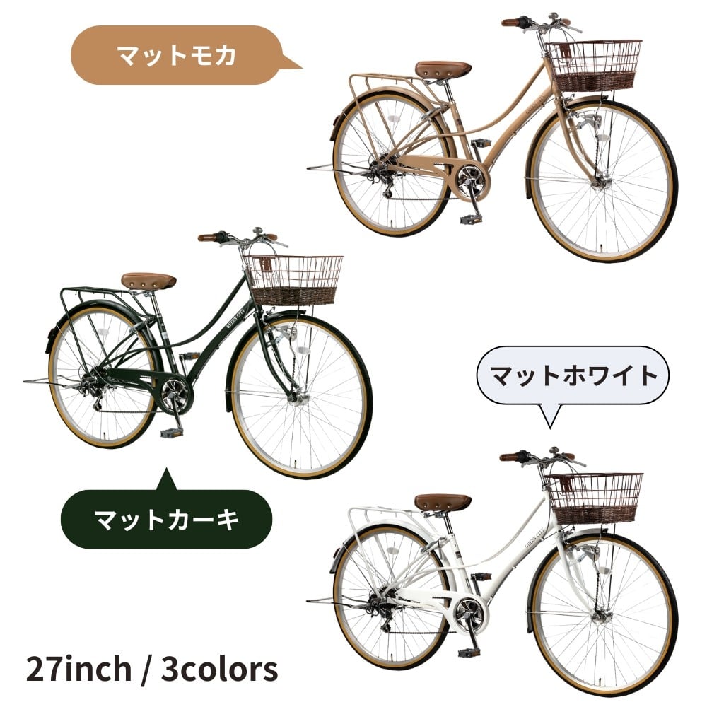 - 自転車 シティサイクル 27型 グリーンシティクラシック 外装6段変速 オートライト ローラーブレーキ [マットモカ] 通学自転車 通勤自転車 27インチ 配送エリア 関東限定 東京 埼玉 神奈川 千葉 群馬 栃木 茨城 完成品納品 一都六県限定配送