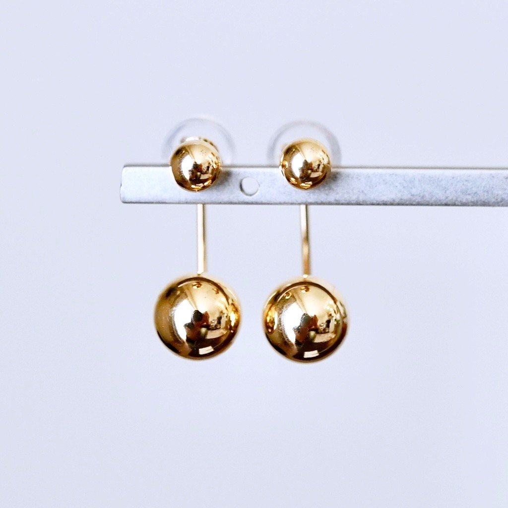 - K18(18金) イエローゴールド おしゃれ 2way ボール ピアス 地金 (直径4mm7mm) 保証書付 M1011 242-031