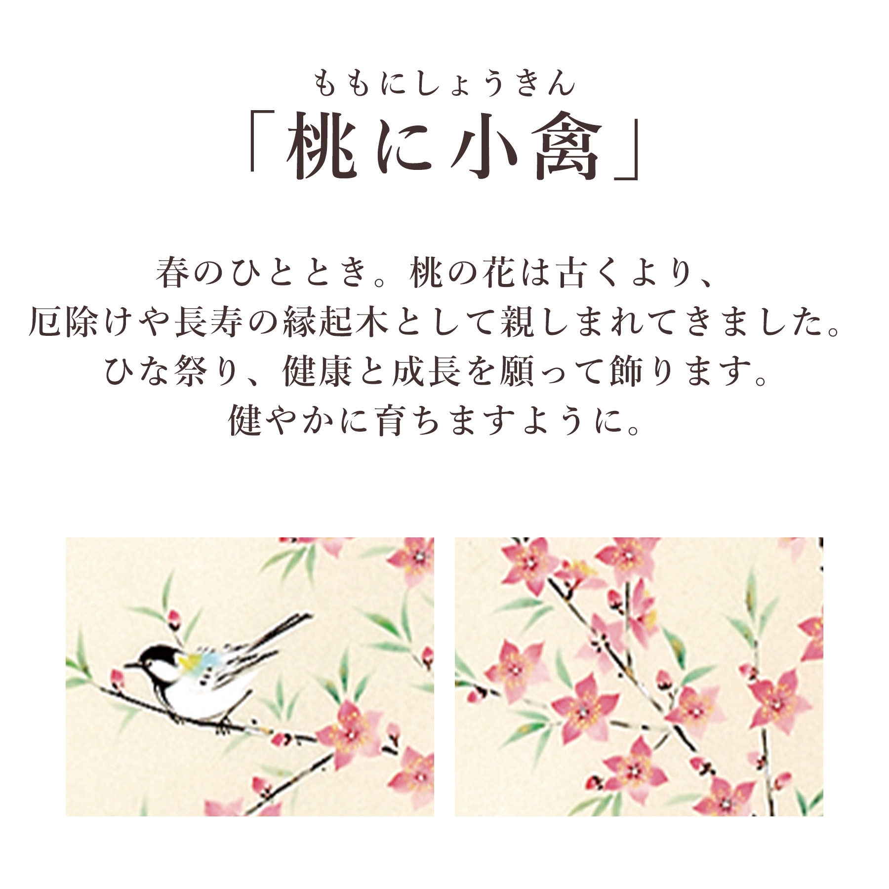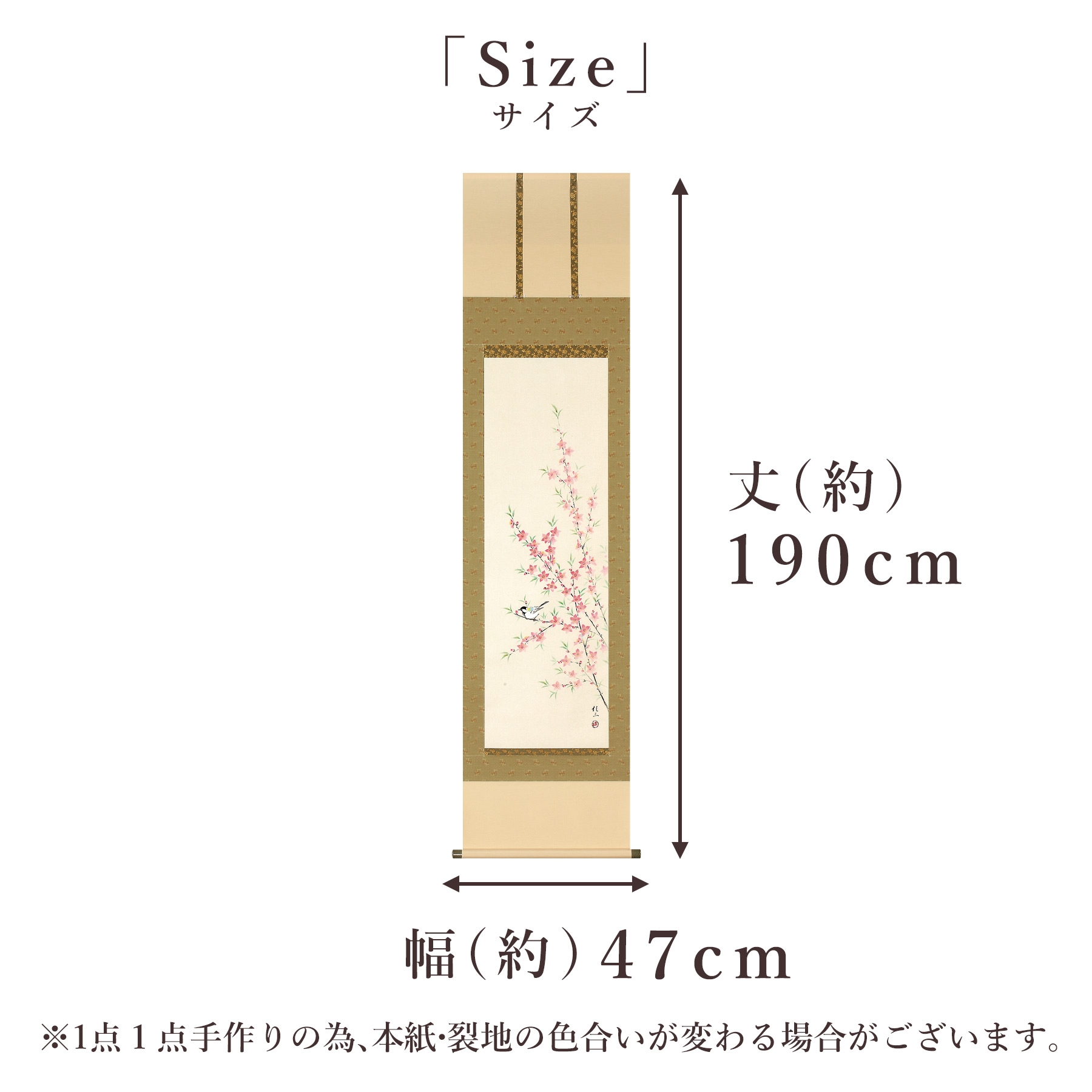 掛け軸「桃に小禽」 佐藤桂三 半切立 サイズ:47×190cm 桐箱付 掛け軸 和室 おしゃれ 日本画 表装 床の間