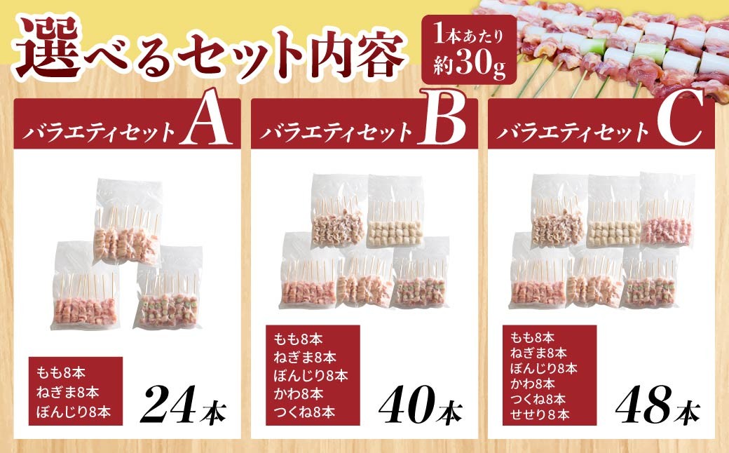 - 国産 焼き鳥 バラエティセット 8本入 3種 5種 6種 選べる容量 | 焼鳥 やきとり 鶏モモ肉 ねぎま ぼんじり もも かわ つくね せせり 鶏肉 お取り寄せ グルメ おつまみ 夕飯 昼ごはん 簡単 便利 フライパン おかず 国産 手作業 串 家庭用 手軽 時短 惣菜 冷凍 群馬県 前橋市