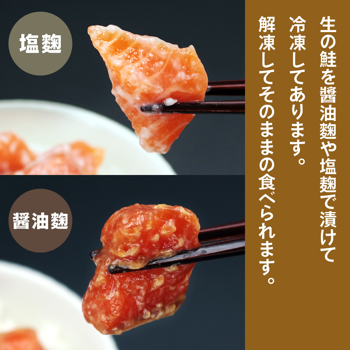- [宮城のブランド銀鮭] ルイベ2種 (塩麹・醤油麹)×各3パック 計6パック|ルイベ るいべ ルイベ漬け るいべ漬け 冷凍 海鮮 おかず おつまみ サーモン 銀鮭 魚 鮭専門店 銀結び 富谷 国産 宮城 [0268m]