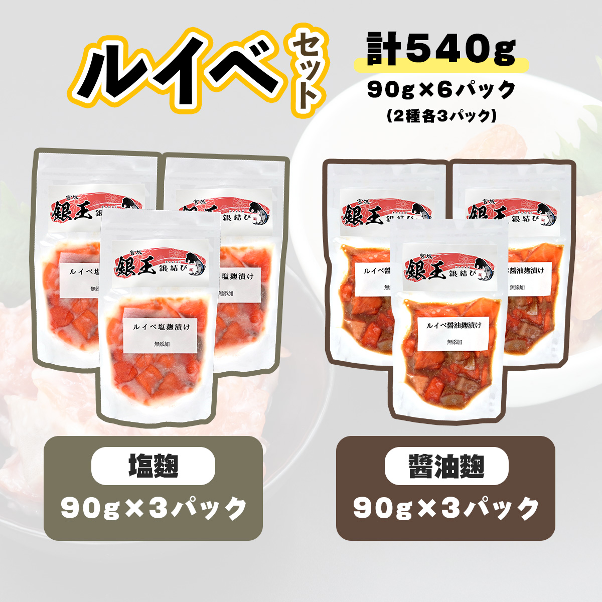 [宮城のブランド銀鮭] ルイベ2種 (塩麹・醤油麹)×各3パック 計6パック|ルイベ るいべ ルイベ漬け るいべ漬け 冷凍 海鮮 おかず おつまみ サーモン 銀鮭 魚 鮭専門店 銀結び 富谷 国産 宮城 [0268m]