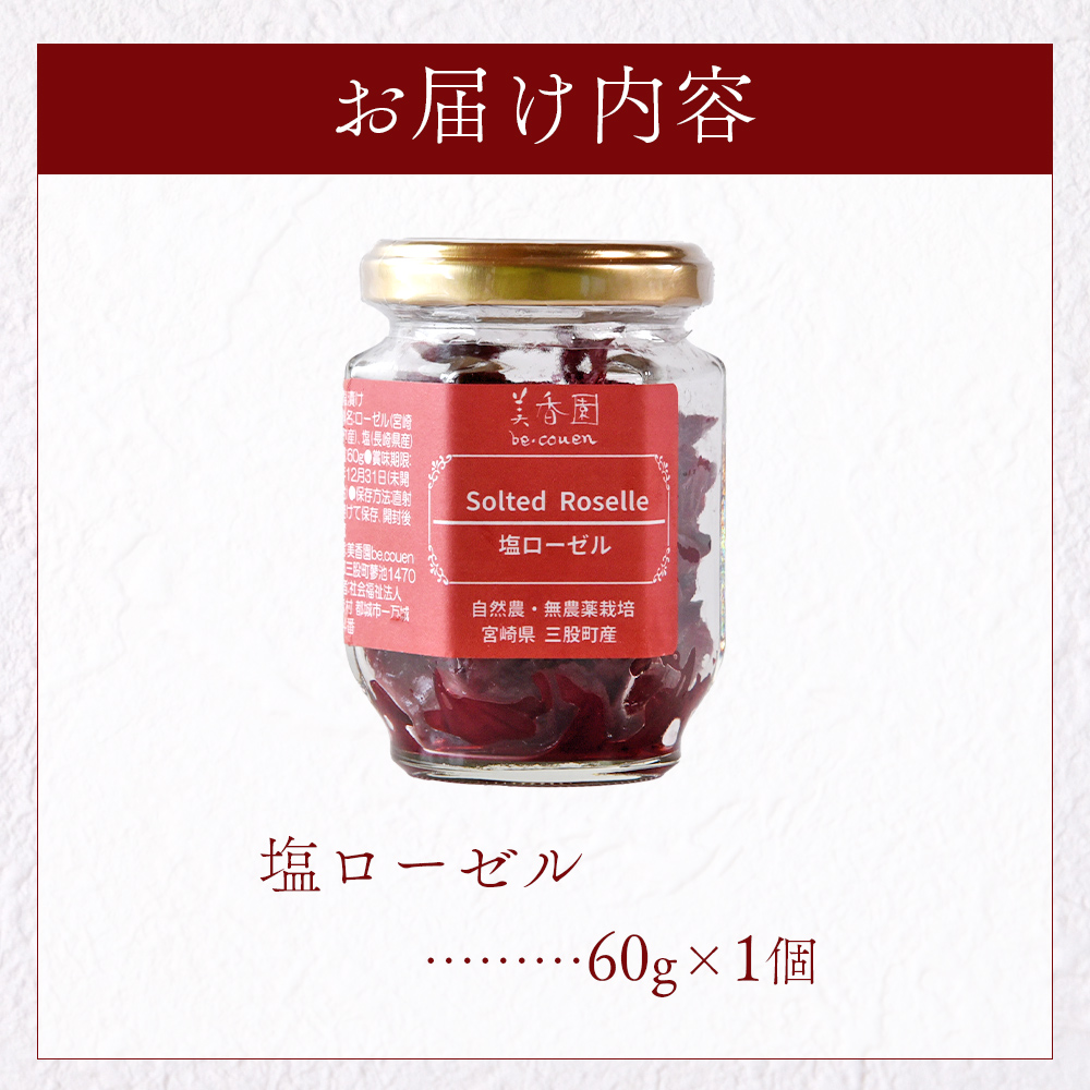 <塩ローゼル 【瓶】60g×1> 国産ハーブ ハイビスカスローゼル 香りや風味が豊か ビタミンC カルシウム 鉄 ポリフェノール ミネラル リラックス 癒し 和食 おにぎりの具 ごはん ご飯 食事 パン 調味料 塩漬け 健康 食生活 宮崎県 三股町【MI624-bi】【美香園】