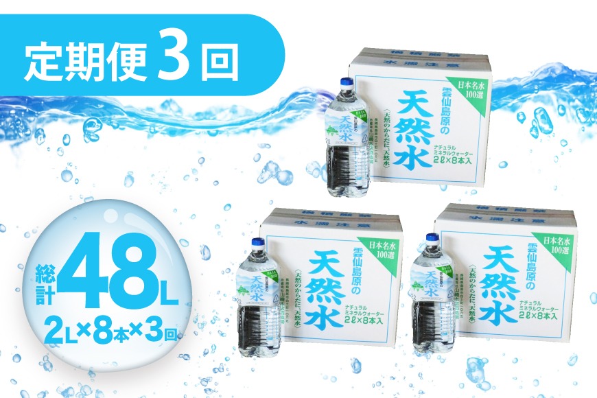 - AJ618 山崎本店酒造場 【3回定期便】 雲仙島原の天然水 2L 8本 [ 水 2リットル 天然水 ウォーター ペットボトル 定期便 定期 おいしい 名水百選 大容量 軟水 長崎県 島原市 ]
