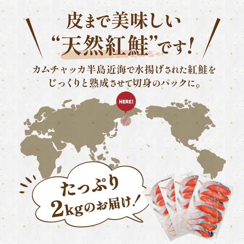 - 【期間限定!寄附額改定↓!】天然紅さけ切身 2kg(500g×4袋) 鮭 さけ サケ しゃけ シャケ 切り身 北海道 冷凍 おかず 小分け 真空 朝食 弁当 _F4F-6161