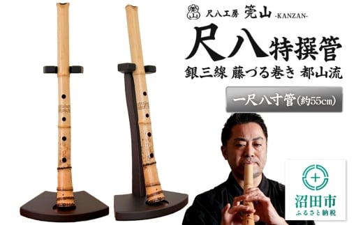 - 《お申し込み後に制作》尺八(特撰管)一尺八寸管 銀三線 藤づる巻き 都山流 尺八工房かんざん