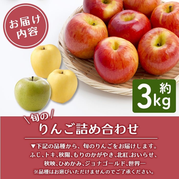 - 道の駅だいとう厳選 旬のりんご詰合せ 約3kg 産地直送 食べ比べ 岩手県一関市産 フレッシュ 林檎 果物 秋冬の味覚
