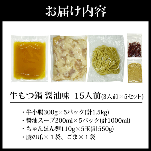 牛もつ鍋 醤油味 15人前(3人前×5セット) PE003