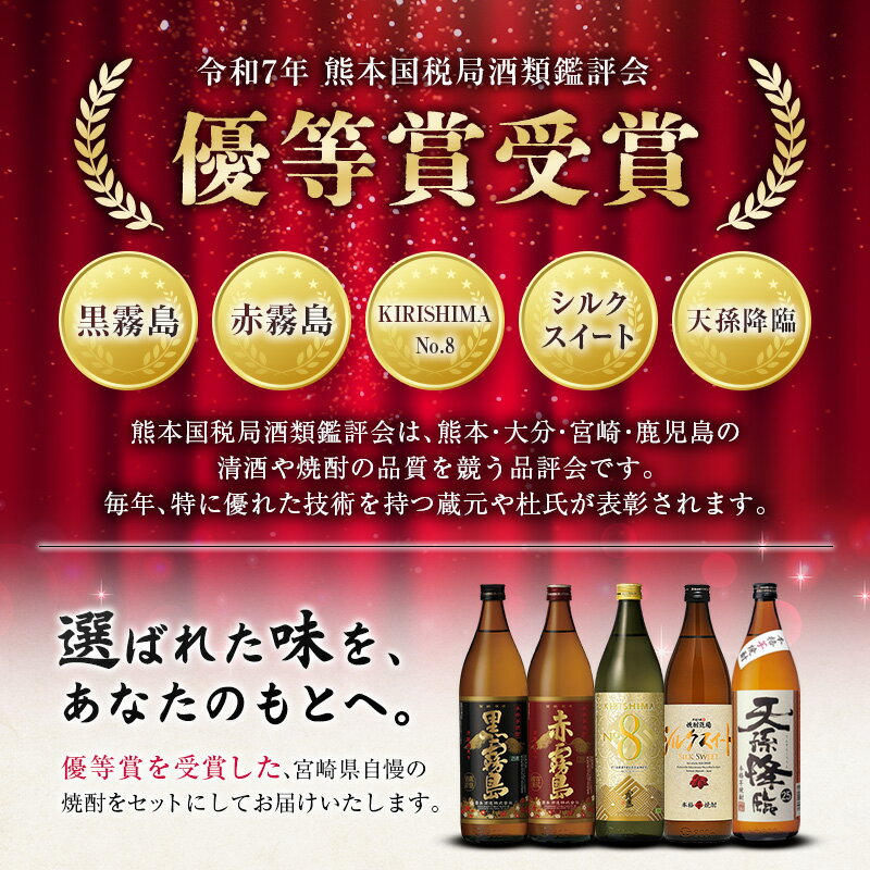 【ふるさと納税】宮崎県産「本格芋焼酎」5本セット 黒霧島・赤霧島・KIRISHIMA No8・シルクスイート・天孫降臨 25度 900ml 瓶 飲み比べ