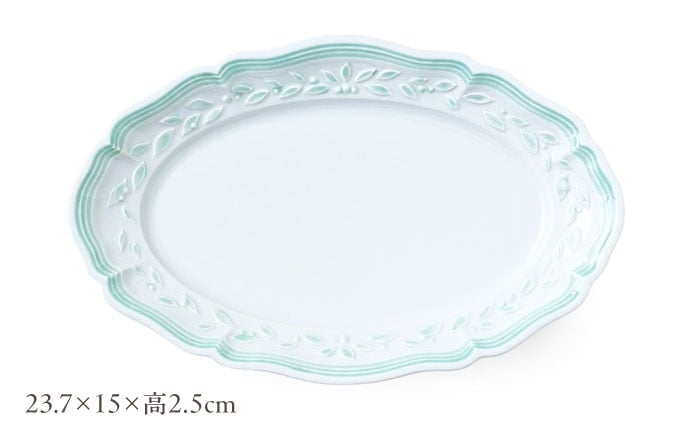- 【波佐見焼】ombre de fleur オリーブオーバル palette green 4枚セット【翔芳窯】 [FE491]