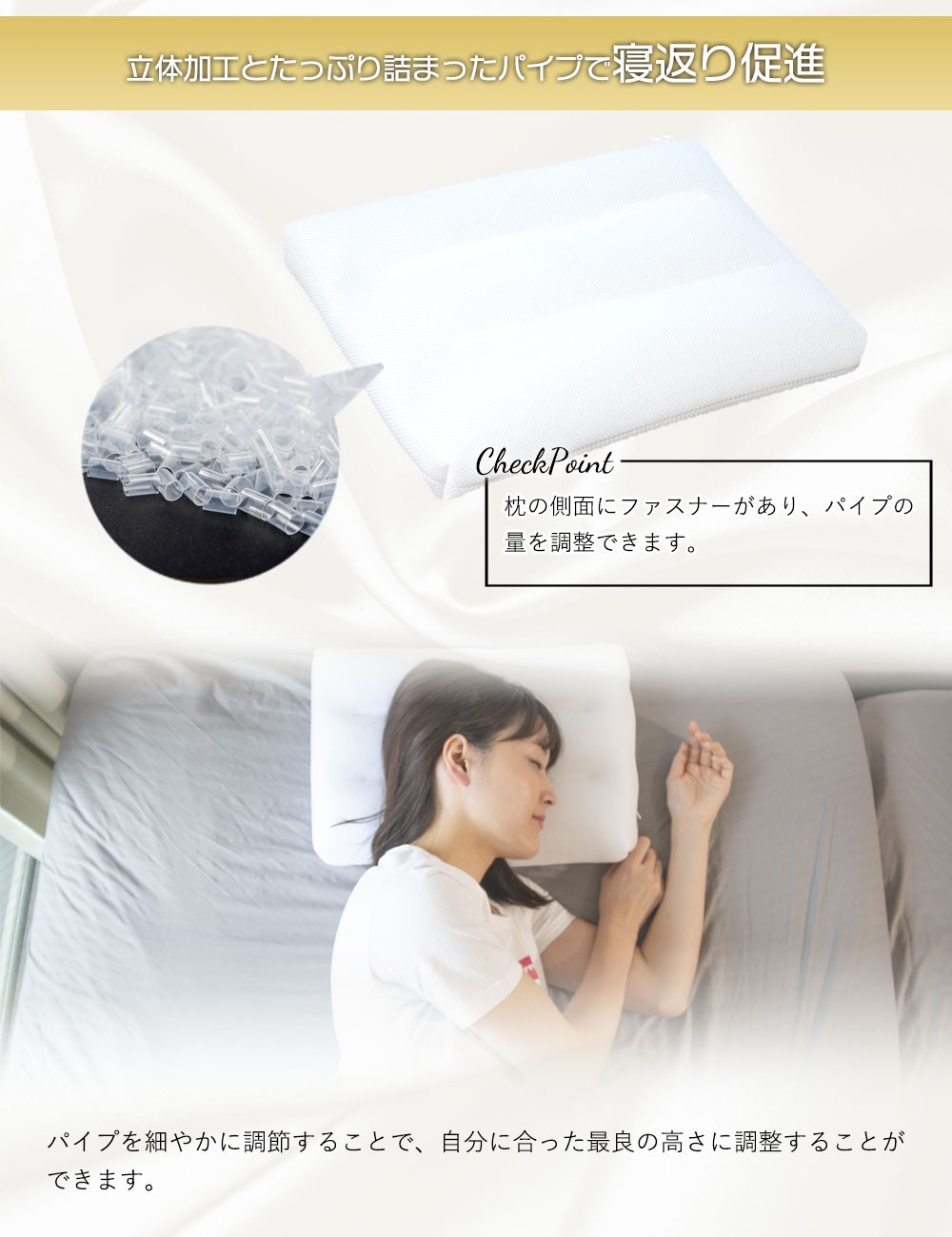 プロトレーナーが薦める 横向きに寝やすい低反発枕 専用ベージュ枕カバー付き[0259]