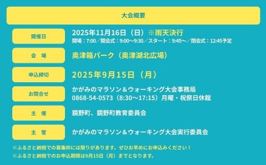 - 【受付終了間近】【選べる距離】2025年かがみのかがみのマラソン&ウォーキング大会-THE FINAL-[出走権]
