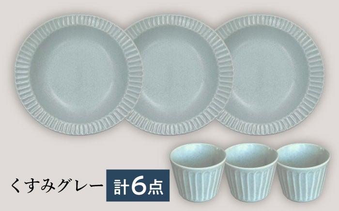 【選べる2色タイプ】【美濃焼/みずなみ焼】 しのぎ カレーパスタ皿&カップ 各3個 6点セット 瑞浪市 / 山喜製陶 プレート マルチカップ 食器 [AZCP005]