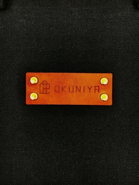 - 【福岡市の縫製工場オリジナルブランド OKUNIYA】本革ネーム(キャメル) トートバッグ ブラック【サイズ選択可】