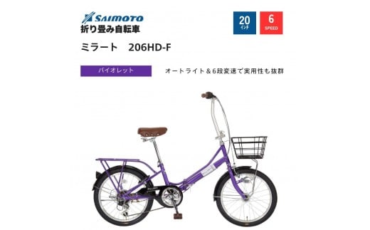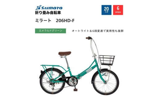 【サイモト自転車 】ミラート 折り畳み自転車 20型 6段変速【完全組立】<カラー選択可能>