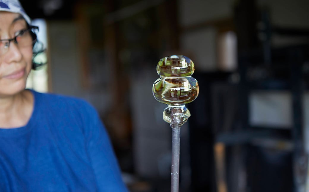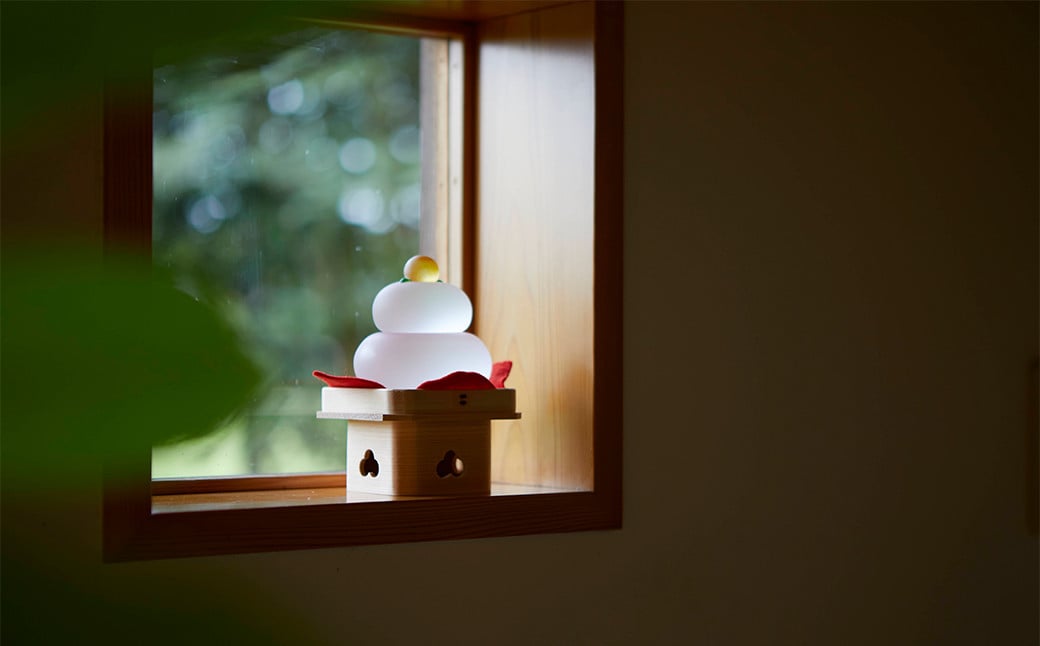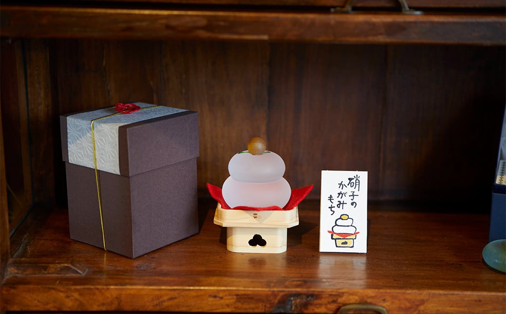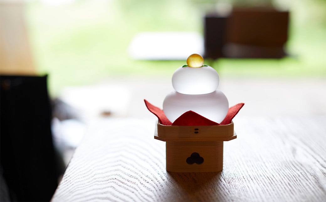 - 清らかな光が乱反射する「硝子の鏡餅」