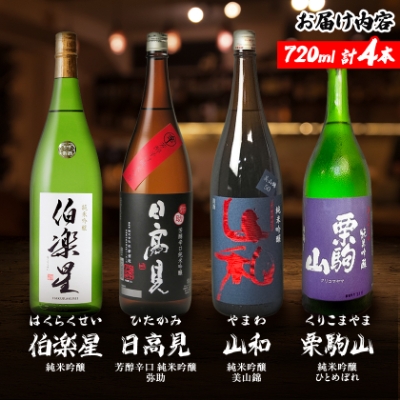 宮城の日本酒 純米吟醸 720ml 4本(伯楽星・日高見・山和・栗駒山)【1401322】