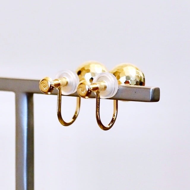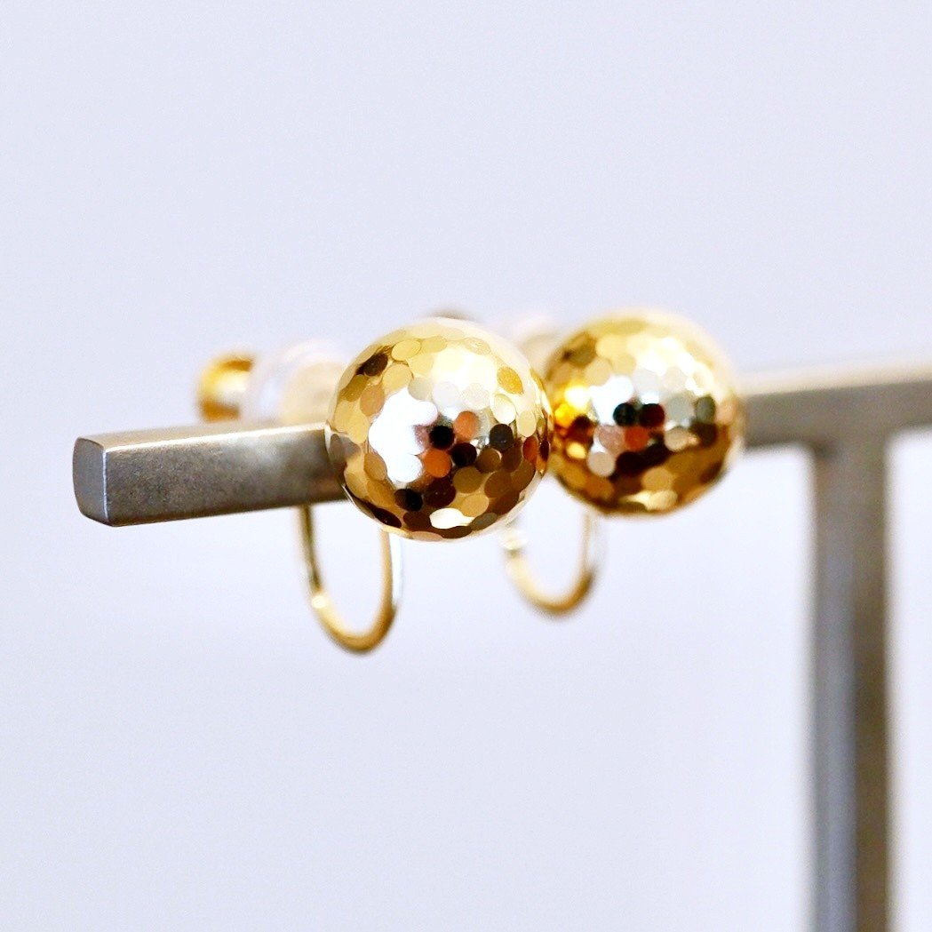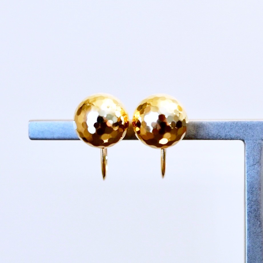 - K18(18金) イエローゴールド ミラーボール イヤリング 地金 中空(直径8mm) 保証書付 M2180ER 242-048