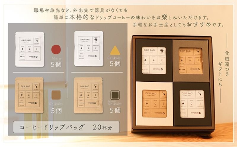 - 【贈答用】コーヒードリップバッグ(20杯分) 4種類 珈琲 コーヒー 自家焙煎 ドリップコーヒー お手土産 旅先 職場 おすすめ ブレンド 中浅煎り 中煎り 深煎り 極深煎り ホット アイス 個包装 ギフト プレゼント 化粧箱 [№5933-0164]