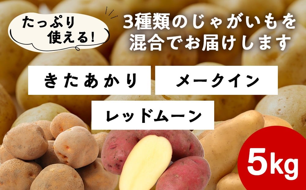 <2026年秋発送>【秋山農園】北海道産 じゃがいも混合5kg(・レッドムーン ・きたあかり ・メークイン)
