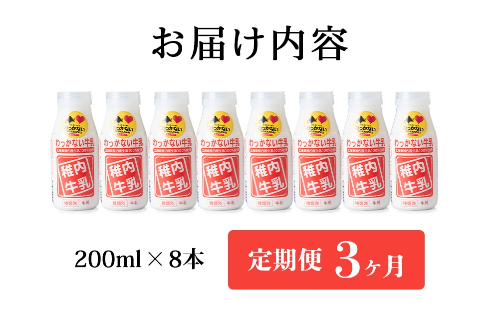 【定期便3ヶ月】稚内牛乳 200ml×8本