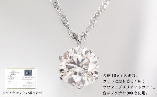 - ネックレス 大粒 1ct 天然 ダイヤモンド プラチナネックレス【鑑別書付】| ジュエリー 1.0カラット ダイヤ プラチナ Pt999 Pt850 ケース付 宝石 アクセサリー ペンダント ファッション レディース シンプル 上品 人気 おすすめ 送料無料 福岡市
