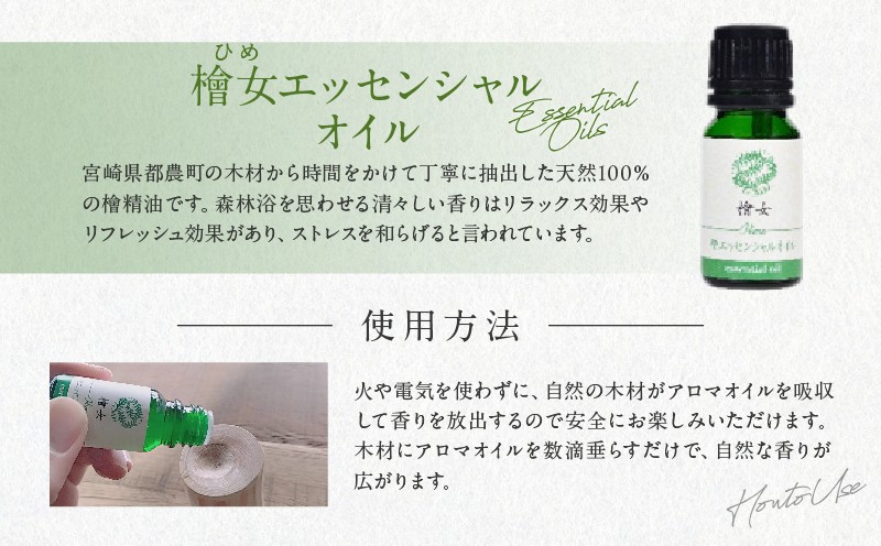 - 都農町製造『檜女(ひめ)エッセンシャルオイル&アロマウッドセット』檜 香り 天然 リラックス 国産_T058-006