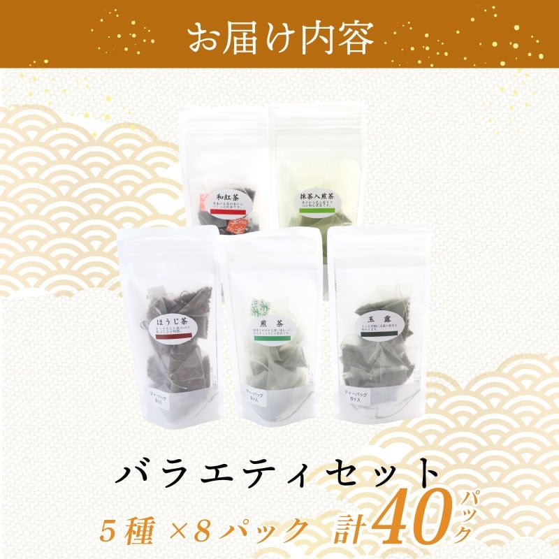 - お茶 ティーバック5種 バラエティセット 煎茶 玉露 和紅茶 ほうじ茶 抹茶入煎茶 お茶 茶 日本茶 緑茶 まっちゃ 抹茶 紅茶 ティーバック ティーパック ティー パック 簡単 便利 持ち運び 国産 政所 銘茶 日本茶専門店 専門店 滋賀県産 アソート 詰め合わせ 詰合せ セット ギフト 贈答 プレゼント 贈り物 御歳暮 お歳暮 滋賀 彦根