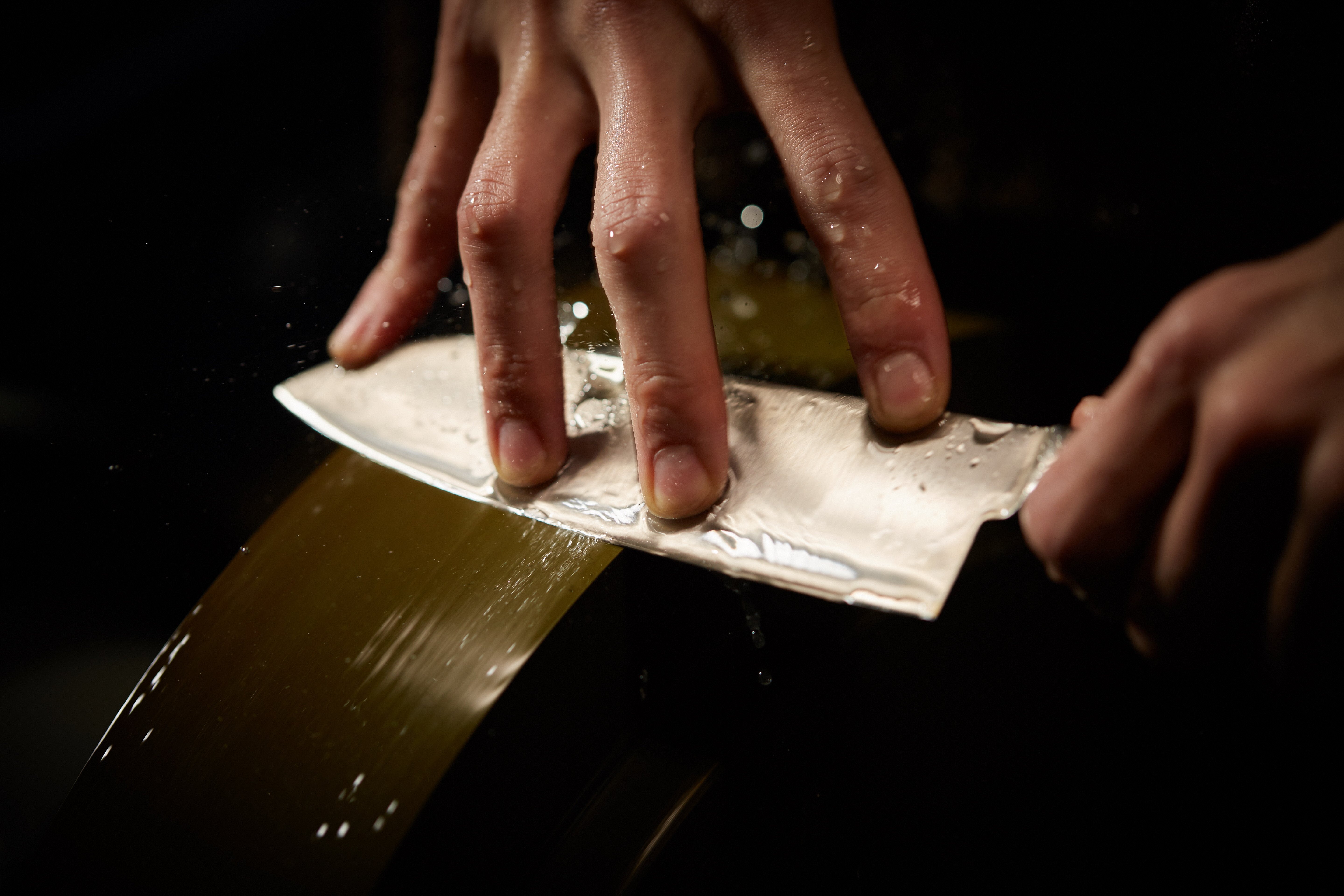 H30-59 兼広作 三層 三徳包丁【砂地加工】