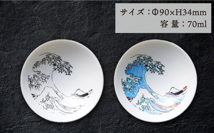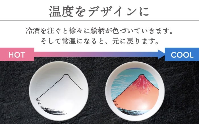 - 【美濃焼】 温度で変化する器 冷感北斎平盃3点セット 多治見市 / 丸モ高木陶器 盃 陶磁器 酒器 冷酒 [TBA283]