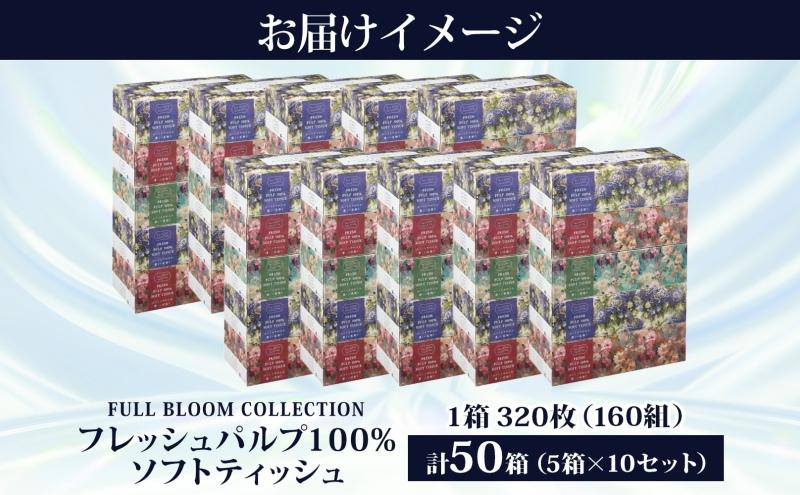 フルブルームコレクション FRESH PULP100% SOFT TISSUE 50箱 5パック×10 パルプ 丈夫 やわらかい ティッシュ ペーパー ふんわり 花柄 まとめ買い 備蓄 日用品 常備品 消耗品 大容量 防災 花粉症 鼻炎 送料無料 河野製紙 埼玉県 蓮田市