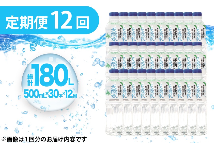 - AJ617 山崎本店酒造場 【12回定期便】 雲仙島原の天然水 500mL 30本 計15L [ 水 ペットボトル 天然水 おいしい 備蓄 日用品 大容量 定期便 定期 1年 名水百選 軟水 長崎県 島原市 ]