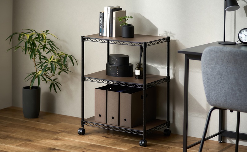 カラーメタルラック ウッドボード付き CMM-55073B ブラック ラック 棚 おしゃれ キャスター キャスター付 収納ラック キッチン ウッドボード付き メタルラック メタル カラーラック 収納 リビング 寝室 かわいい アイリスオーヤマ 幅55