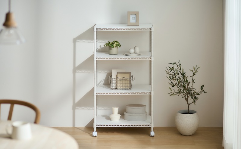 - カラーメタルラック ウッドボード付き CMM-55104B ホワイト ラック 棚 おしゃれ キャスター キャスター付 収納ラック キッチン ウッドボード付き メタルラック メタル カラーラック 収納 リビング 寝室 かわいい アイリスオーヤマ 幅55