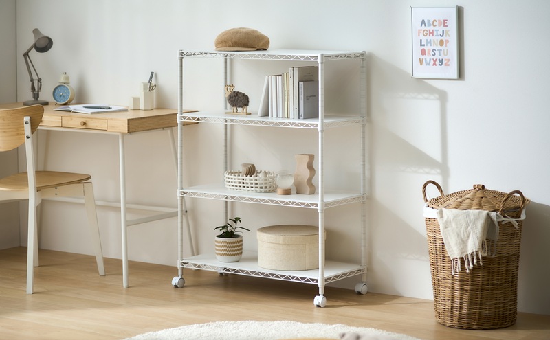 - カラーメタルラック ウッドボード付き CMM-75104B ホワイト ラック 棚 おしゃれ キャスター キャスター付 収納ラック キッチン ウッドボード付き メタルラック メタル カラーラック 収納 リビング 寝室 かわいい アイリスオーヤマ 幅75