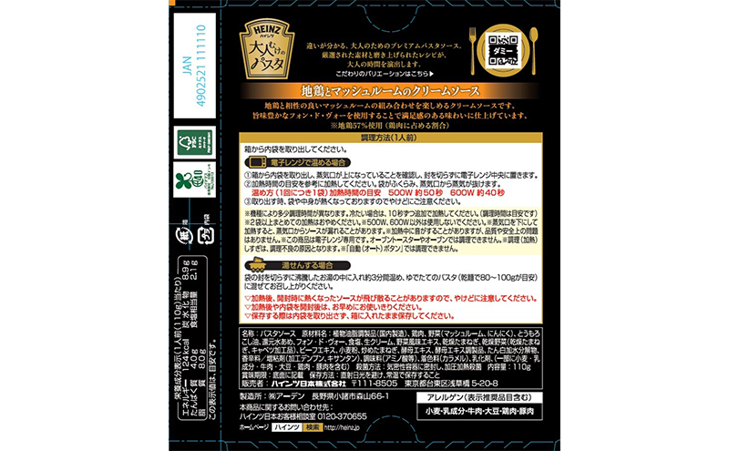 - 「ハインツ」大人向けのパスタ 地鶏とマッシュルームのクリームソース 10箱