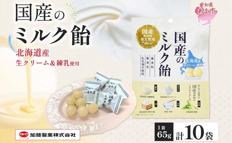 【ふるさと納税】加藤製菓 国産ミルク飴 65g×10個 飴 あめ キャンデイー 個包装 国産 日本産 素材の味 素材 ミルク 牛乳 練乳 生クリーム 甜菜糖 まろやか 優しい味わい 持ち歩き お取り寄せ 送料無料 愛知県 あま市