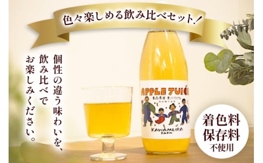 無添加 りんごジュース 3種 飲み比べ 1L×3本【葉とらずふじ・王林・千雪】カワムラファーム [u9]