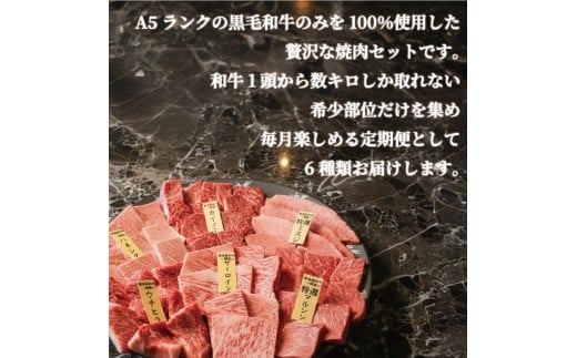 A5ランク黒毛和牛 3回定期便 希少部位 計6種類 1kgずつ×3回 サーロイン カイノミ ハネシタ マルシン ミスジ ウチヒラ 和牛 焼肉 人気 おすすめ ふるさと納税 肉 お肉 にく おにく 牛肉 ぎゅうにく 京都 八幡 京都府 八幡市 老舗 丸中精肉店 牛宗まるなか