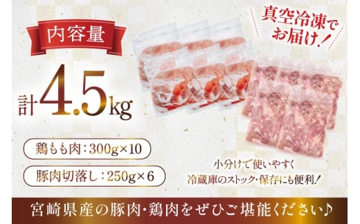 豚肉 鶏肉 宮崎県産 豚切り落とし 250g 6p カット済み 鶏もも 300g 10p 計4.5kg セット [TRINITY 宮崎県 日向市 452061321] 豚 切り落とし 切落し 鶏 鶏もも肉 もも もも肉 鶏モモ 鶏モモ肉