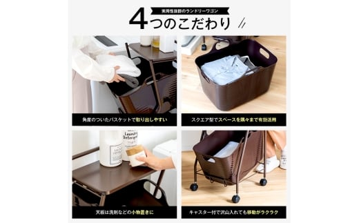 - [№5224-1757]Kラインランドリーワゴン 3段(ブラウン) | AD19BR 足立製作所 ランドリーバスケット キャスター付き ランドリーボックス ランドリー収納 おしゃれ 収納バスケット 脱衣カゴ ファミリー 新潟