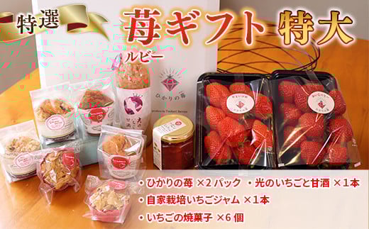 E009 特選いちごギフト(特大)いちごギフト(特大)詰め合わせ (光市産いちご 300g×2, 甘酒 330g×1, いちごジャム×1, 焼き菓子×6)【100セット限定】【2026年1月12日以降発送】