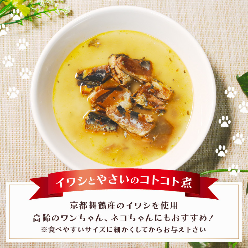無添加 ペットフード 計4袋 3種類 ( イワシ煮 豆乳鍋 トマトシチュー ) 犬 猫 ドッグフード ドッグ キャットフード ペット フード ペット用品 いぬ ねこ 犬用 猫用 国産 魚 肉 野菜 有機 ごはん ご飯 おやつ 小分け 袋 京都 舞鶴