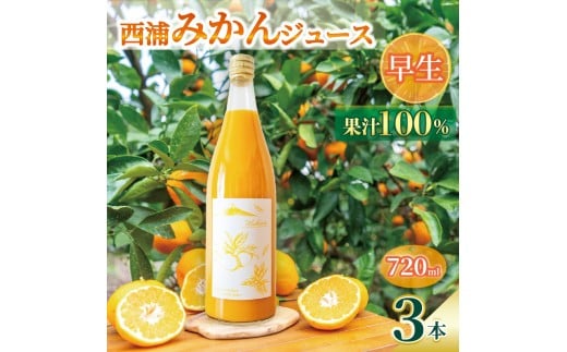 【先行予約_1月中旬発送】オレンジ ジュース ストレート 果汁 100% 早生 みかん 720ml×3本 西浦 蜜柑 濃厚 飲み物 ミカン 人気 贈答用 静岡 沼津