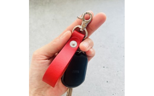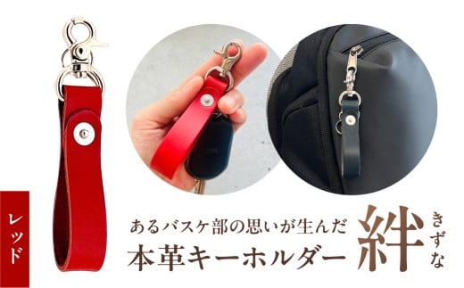 - 本革キーホルダー「絆 - きずな」(レッド) 【革小物 革製品 キーホルダー 牛革 栃木レザー 職人 贈り物 記念品 プレゼント 還暦祝い】