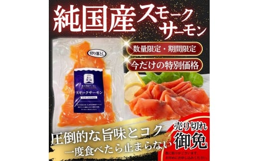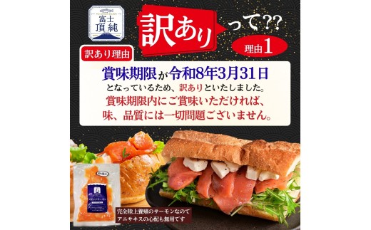 富士頂純サーモン スモークサーモン 切り落とし 200g × 1パック 合計200g 訳あり 冷凍 賞味期限 2026年3月31日 富士山麓のきれいな天然水で養殖された安心安全なサーモン 完全無投薬 ワクチンフリー アニサキスフリー サステナブル 鮭 切り身 着色料 保存料 無添加 燻製 お歳暮 ギフト 送料無料 【n0666-01_nes】